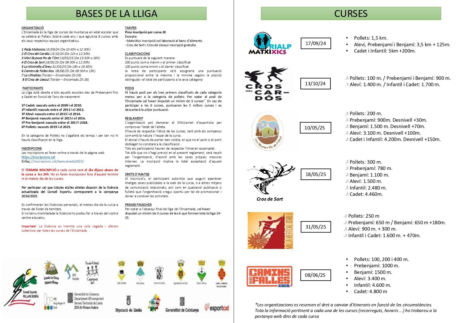 - Sense llicència esportiva del Consell esportiu: 9,5€ (2€ inscripció + 7,5€ llicència)