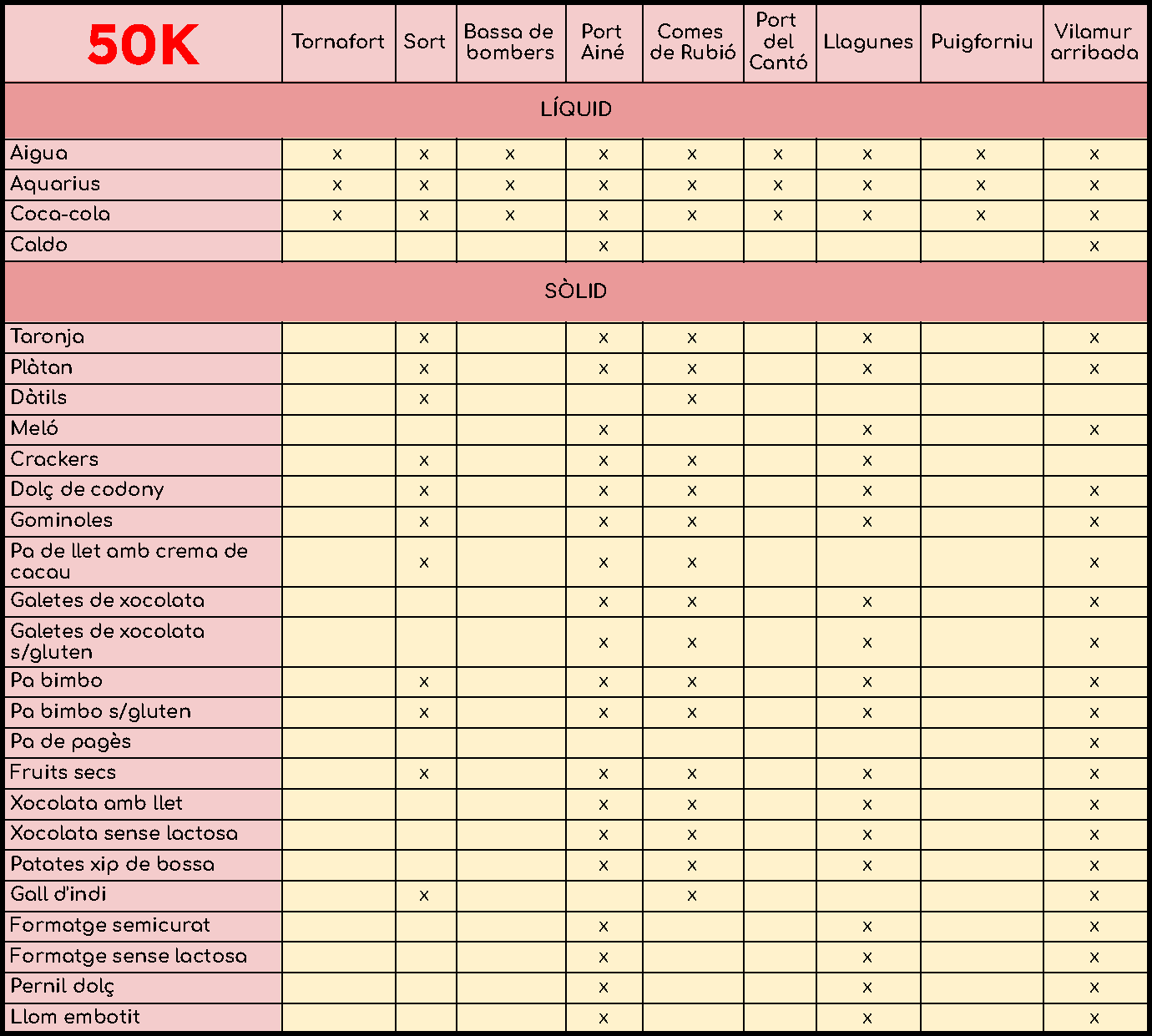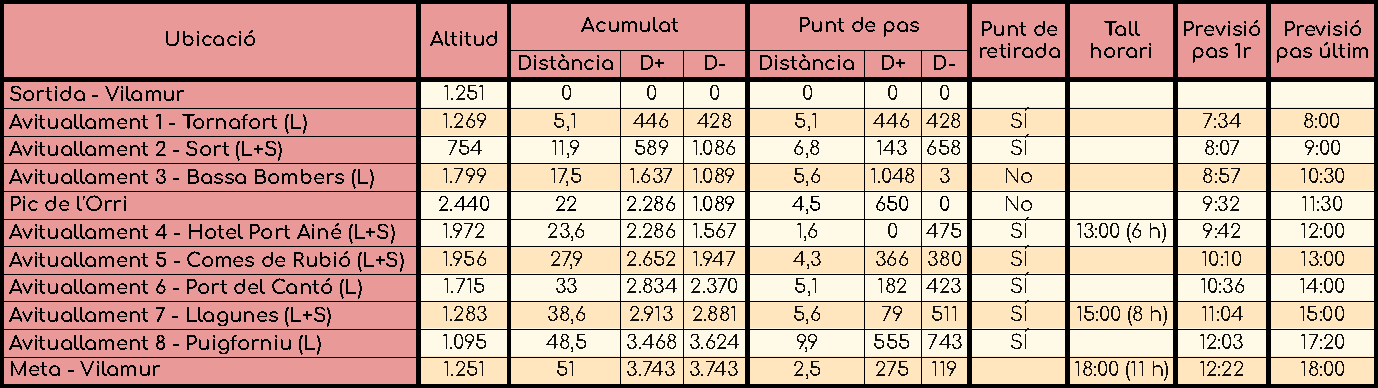 - Avituallaments líquids i sòlids durant la cursa.